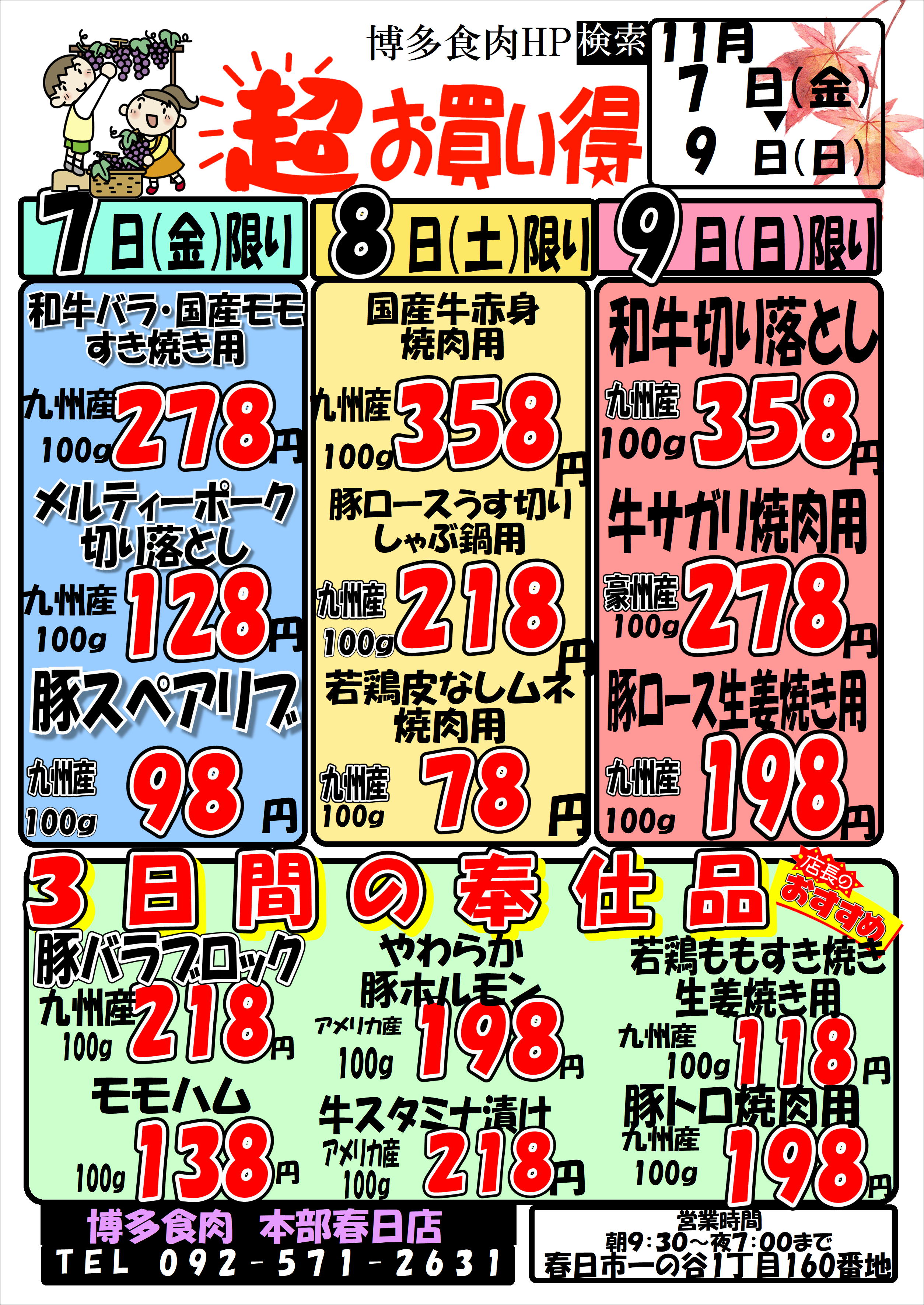 11月7日(金)~11月9日(日)お買い得情報