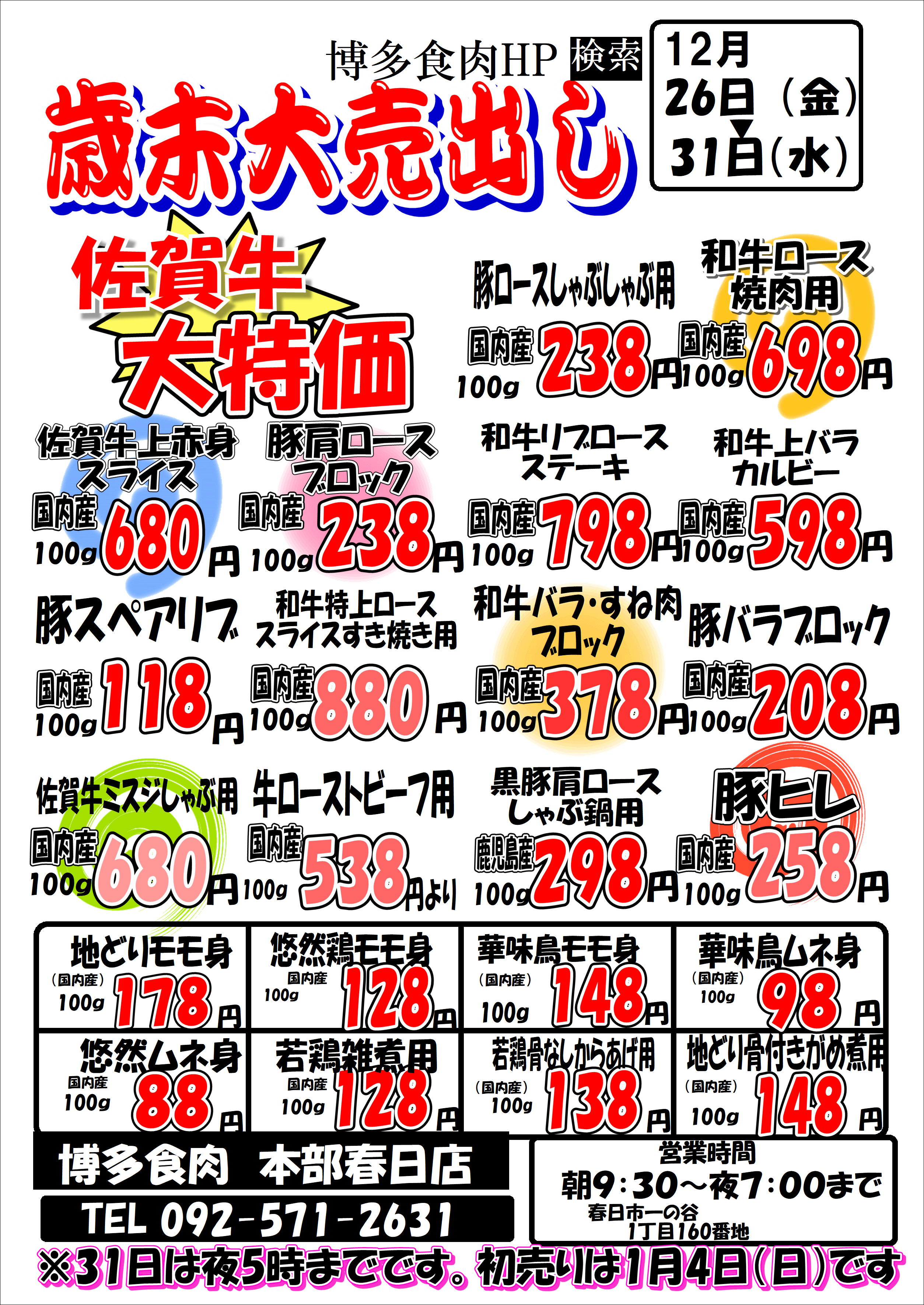 12月26日(金)~12月31日(水)まで休まず営業いたします‼
